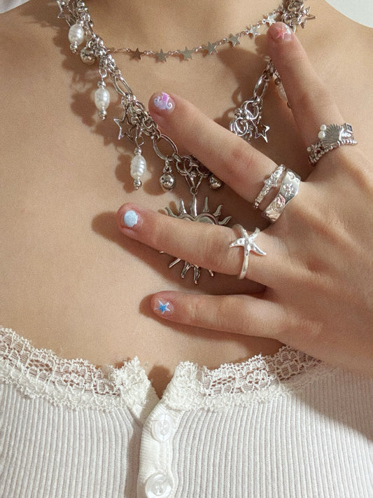 Serein Meteor Heart Star Ring Set