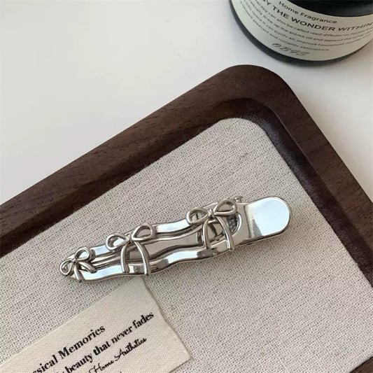 Natalie Silver Bow&Heart Clip