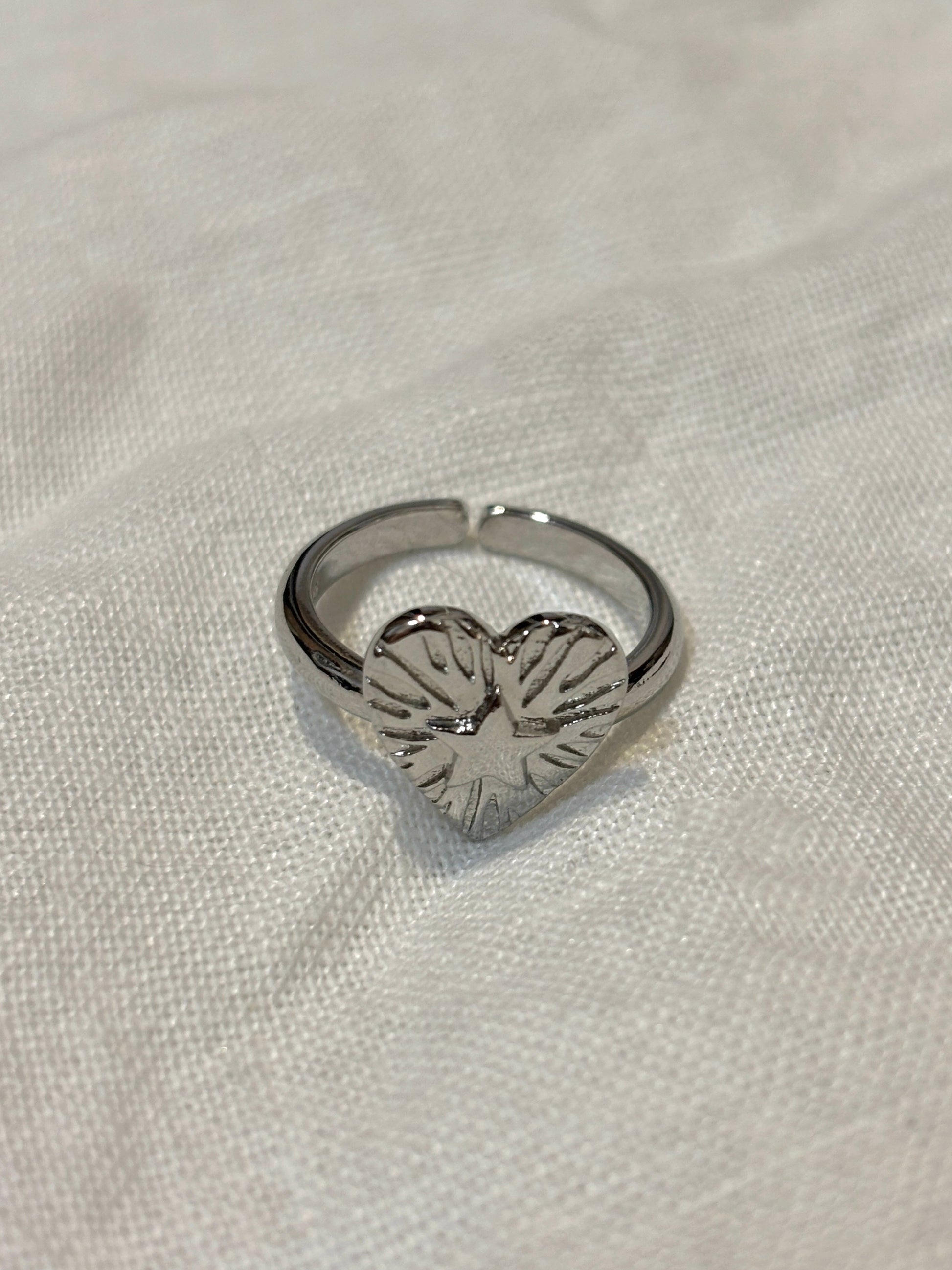 A bold heart with a star-shaped contour and intricate engraving at the center. It captures a sweet yet edgy vibe that makes it the perfect statement piece. Feminine and strong.