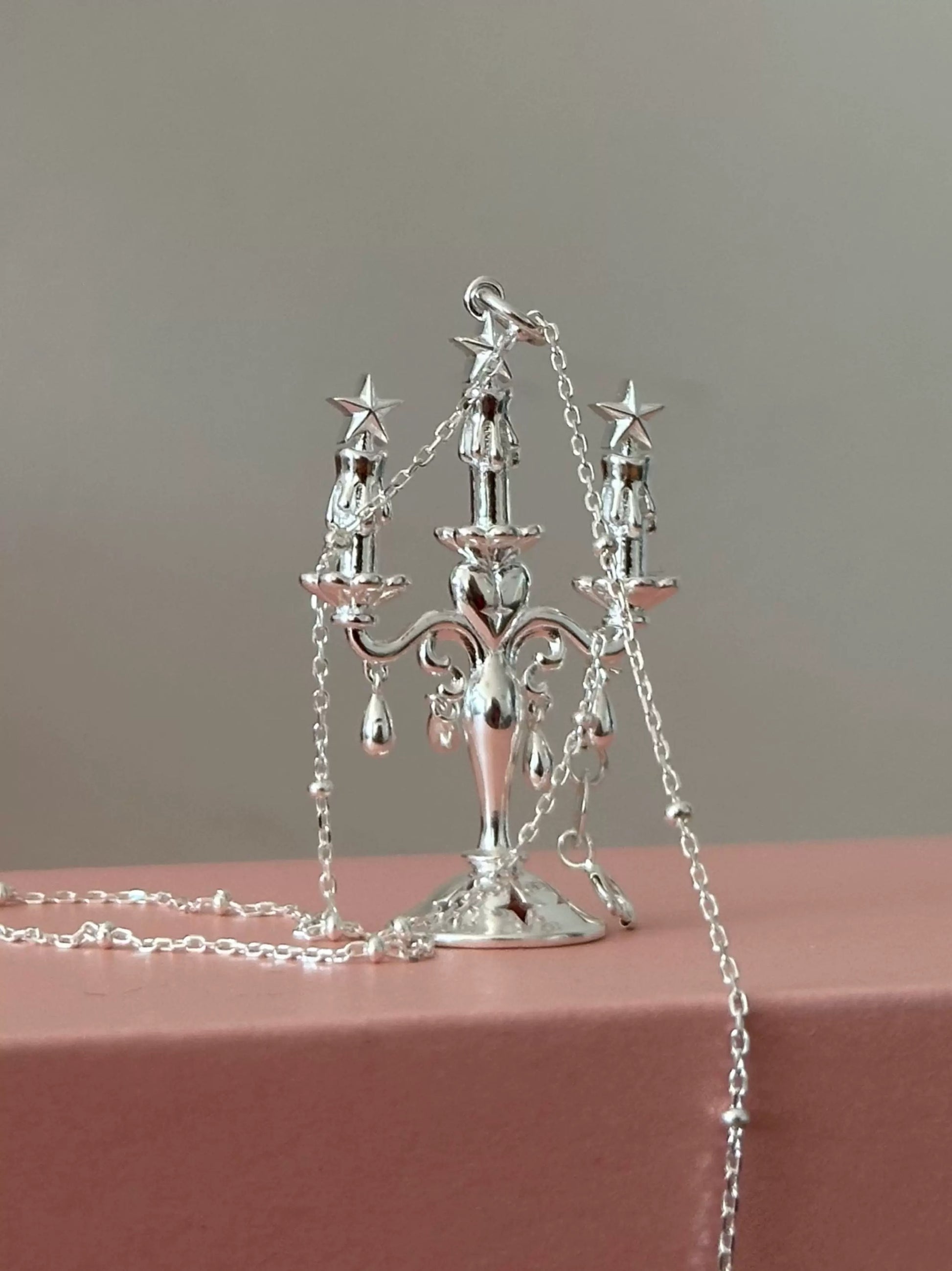 A silver chain necklace, designed in a candlestick vintage Baroque style.