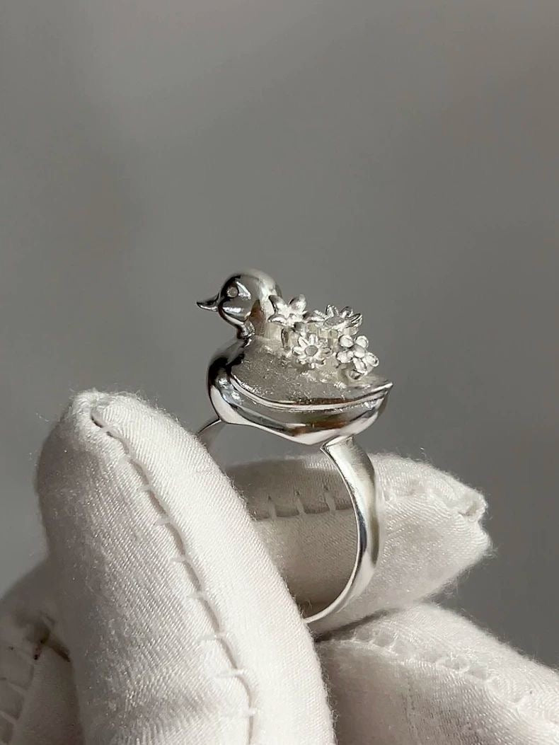 ✔ Duckling and floral sculptural design with a poetic, storybook feel