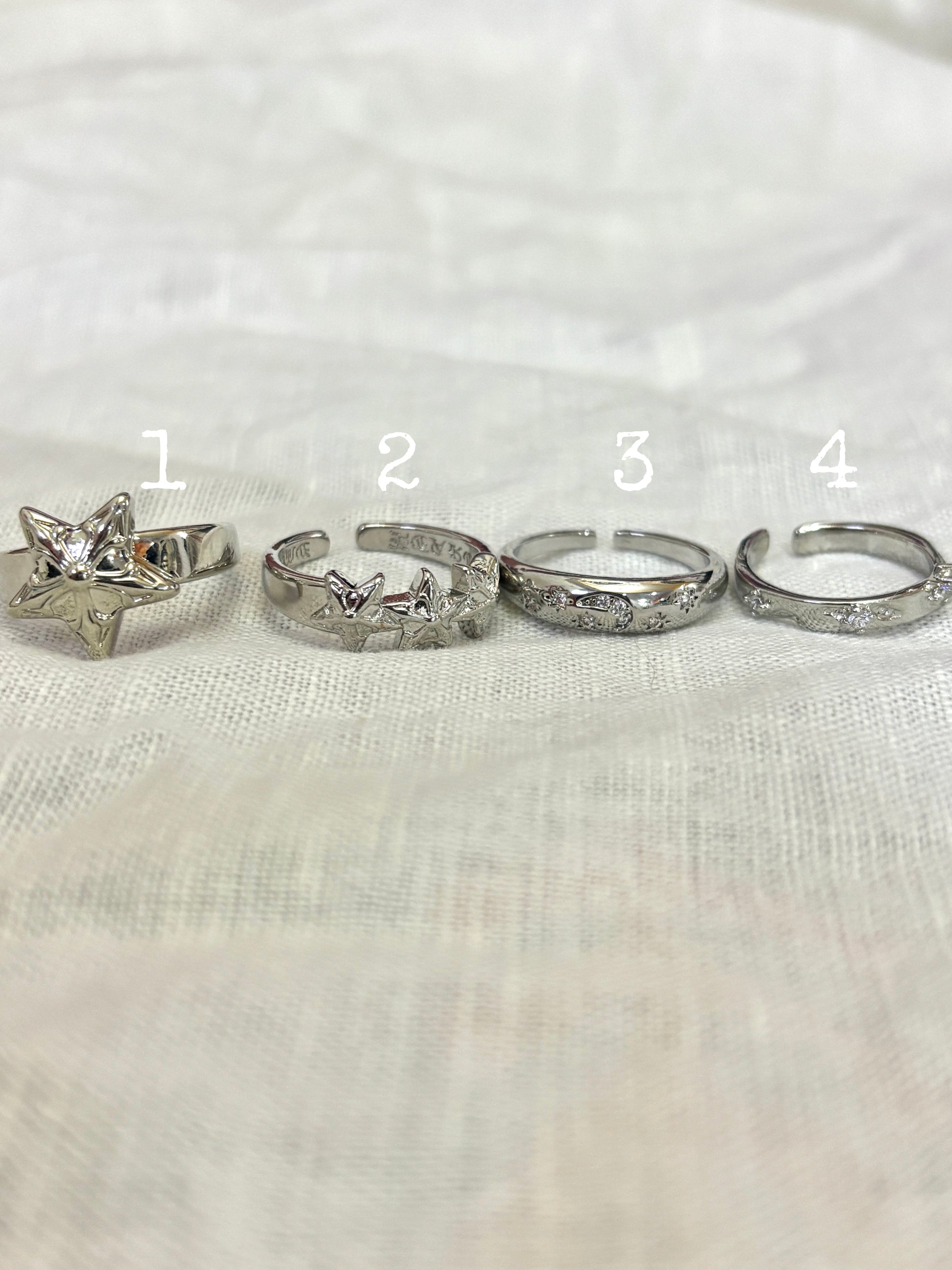 Refresh your jewelry rotation with The Lyra Star Ring Set. This ring set features 4 unique adjustable rings designed with a grunge-glam edge.