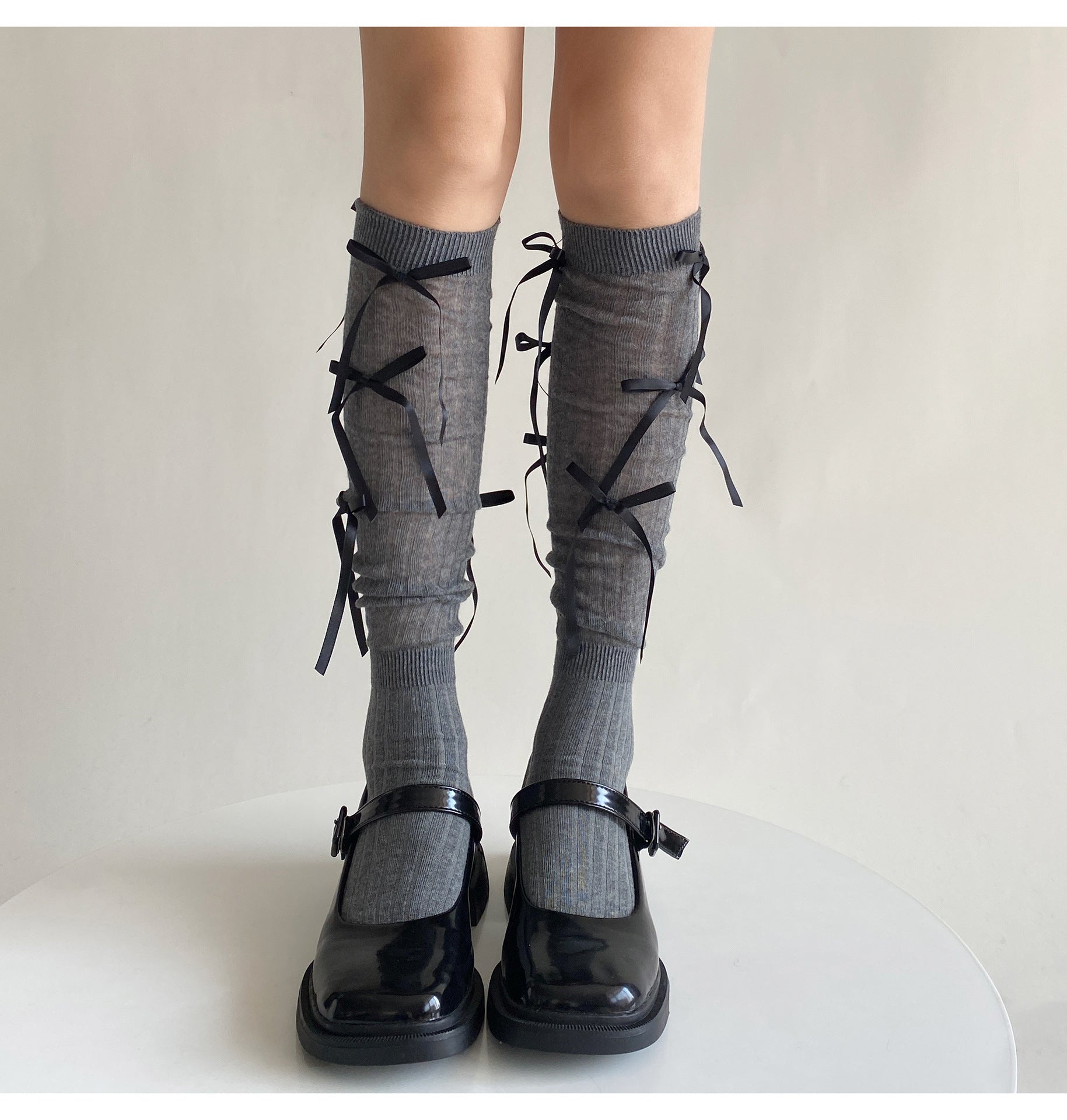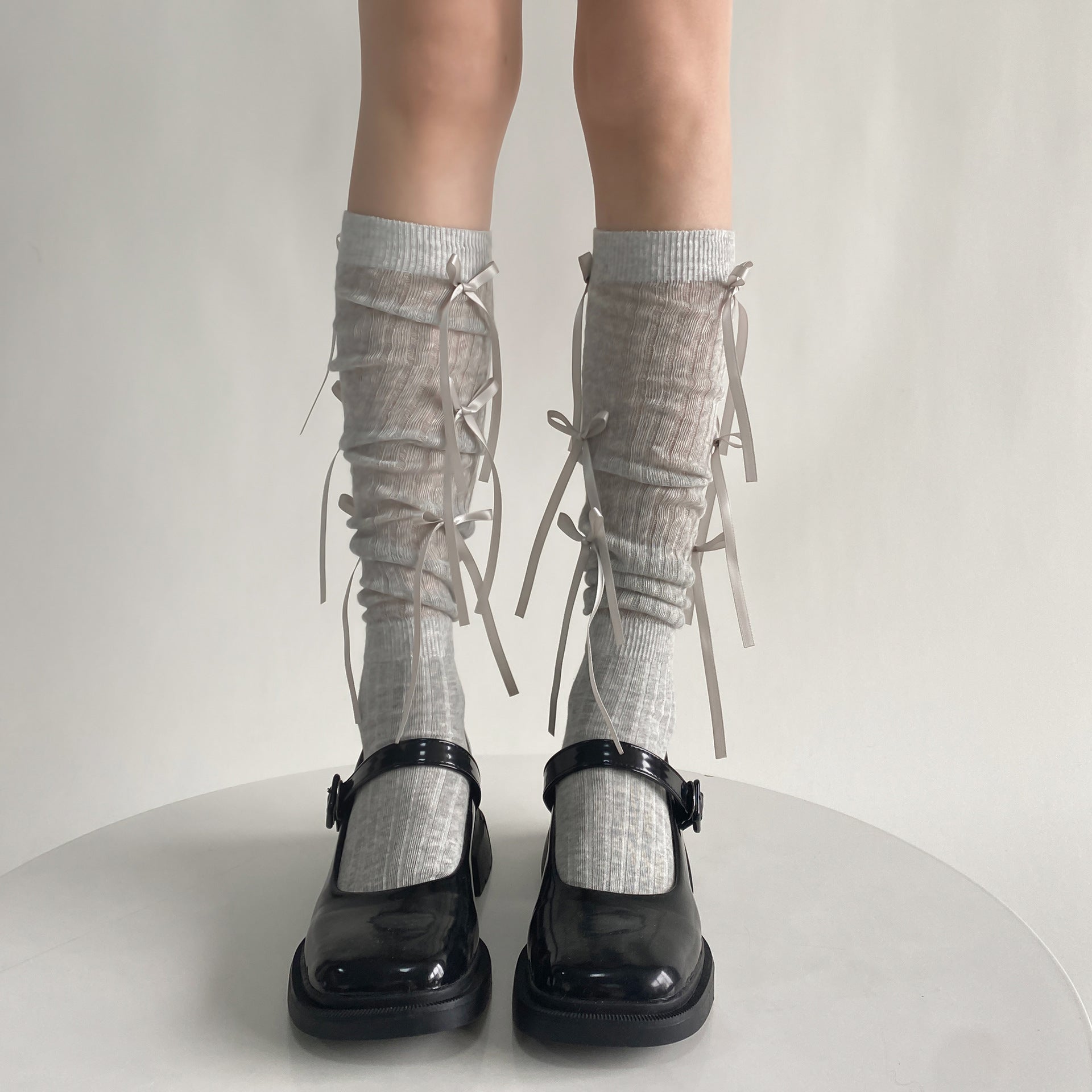 The Nova Bow Socks add a sweet, playful touch with soft fabric and delicate ribbon bows. Perfect for coquette, balletcore, and everyday girly styling.